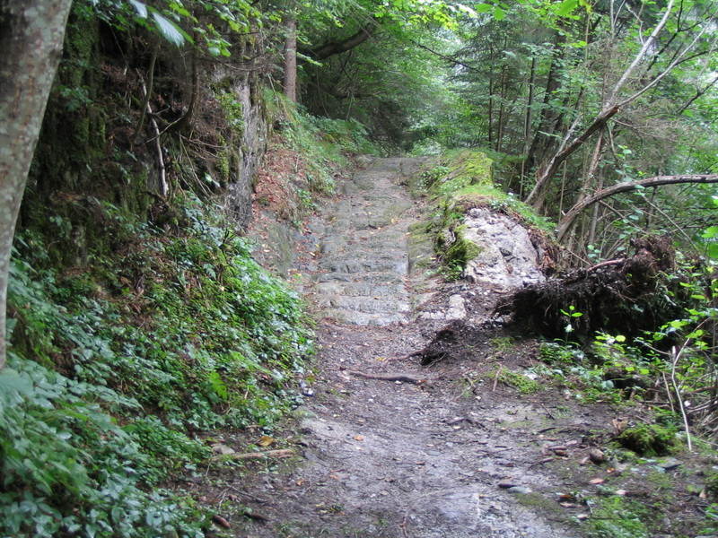 Ab Landeck gab es auf der Via Claudia zwei verschiedenen Routen. Die leichtere führte direkt am Inn entlang. Die andere, natürlich schwierigere Route führte an Schloss Landeck vorbei über die Fließer Platte nach Altenzoll. Über diese Stecke quälten wir uns dann auch hoch und wurden mit einem super Höhentrail, gespickt mit historischen Wegstücken und toller Aussicht entschädigt. In Fließ musste einfach ein Capuccino genommen werden, bevor es über eine Asphaltstraße wieder ins Tal zum Inn ging.