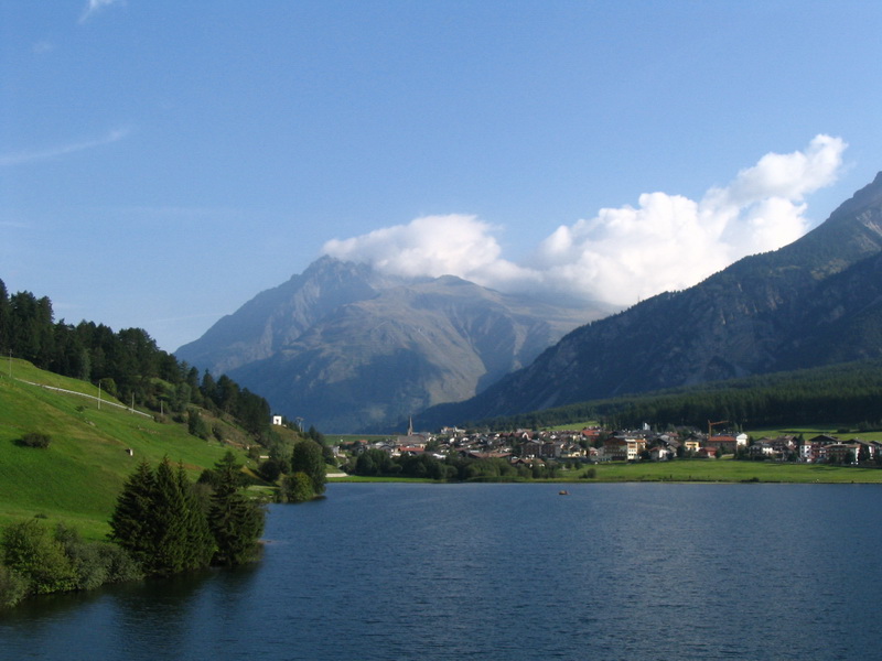 Roger hätte eigentlich in Prad wieder auf seine ursprünglich geplante Joeroute abzweigen können. Er hatte sich aber entschieden, mit mir das Etschtal hinunter nach Meran zu fahren. Mit Ulrike wurde ein Campingplatz in Lana als Ziel für den Abend verabredet und los ging es mit einer tollen Abfahrt rechts am Haidersee entlang nach Burgeis.