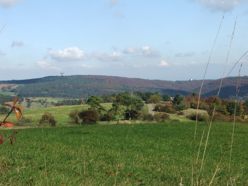 Hinter Gilsdorf verließ ich das kleine Bachtal und bog links auf einen Wirtschaftsweg ab, überquerte die L 165 und erklomm den Stockert, auf dessen Gipfel das alte Radioteleskop weit sichtbar in den Himmel ragt.
