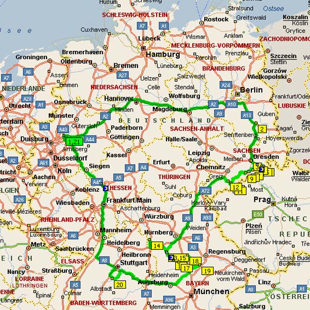 Nach 14 Tagen Abwesenheit haben wir nun gut 2200 km mehr auf dem Tachometer unseres Hobby 600. Wir haben die Ziele, die wir uns vorgenommen hatten alle gesehen - waren im Spreewald, in Dresden, der Sächsischen Schweiz und im Altmühltal. Das Wetter hat auch der Jahreszeit entsprechend mitgespielt - von ausgesprochen schönen Tagen bis zu einem Regentag hatten wir alles, was man Ende September so erwarten kann. Das Wohnmobil ist wieder sehr gut gelaufen - das neue Bett und die Reparatur am Kühlschrank haben sich gelohnt. Bike mäßig war es eher eine Tour der ruhigeren Art - 260 km in vier Tagen von Rothenburg bis nach Kehlheim - von der Altmühlquelle bis zu ihrer Mündung in die Donau. Einen Bericht dieser Tour auf zwei Rädern finden Sie hier.