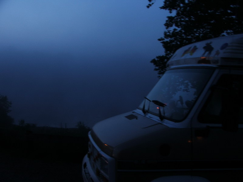 Diese lotste mich dann auch richtig auf die E4. Dort fuhren wir noch eine gute Stunde durch die dunkle Nacht. Gegen 3:30 Uhr erreichten wir vor Ljungby den Rastplatz, auf dem wir schon im vergangenen Jahr übernachtet hatten. Im Nebel des beginnenden Tages parkten wir unseren Hobby 600 nach den ersten 858 km und schliefen auch sofort ein.