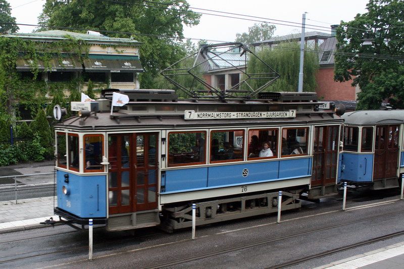 Irgendwann überquerten wir die Vasabron und gingen in die neue City. Von dort wollten wir eine Stadtrundfahrt unternehmen. Als wir die Hamngatan erreichen, hören wir laute Technomusik. Dann sahen wir einen Lastwagen. Auf seiner Ladefläche waren riesige Lautsprecher installiert und junge Leute tanzten im Takt der Musik, winkten den Passanten zu und prosteten mit Bierdosen zu. Auf Transparenten stand irgendwas von „Danke, Mama" und viele Namen. Auf ein Mal kam ein zweiter LKW, und dann ein dritter und immer mehr. Sie fuhren zwischen den Kreisverkehren Sergels Torg und Nybroplan die Hamngatan immer rauf und runter. Die Passanten blieben stehen und klatschten mit und die jungen Leute feierten ausgelassen. Bald erkannten wir auch den Grund der Freude: Student 2009 - vergleichbar mit unserem Abitur feierten die jungen Leute ihren Schulabschluss.