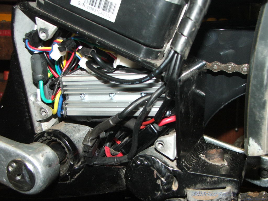 Der neue Controller (Suzhou Kunteng KT36ZWSRT) war nicht nur etwas kleiner als der alte Controller, er hatte auch andere Steckanschlüsse für Akku und Motor. Der Händler hatte mir aber passende Stecker beigelegt und so konnte ich die Anschlüsse umbauen. Die verschiedenen Anschlüsse haben alle andere Stecker bzw. Farben, die in einer Zeichnung dokumentiert sind. Dann habe ich den Controller angeschlossen und zunächst nur mit Display und Daumenschalter den Motor angesteuert. Er lief! Der erste Schritt war getan.