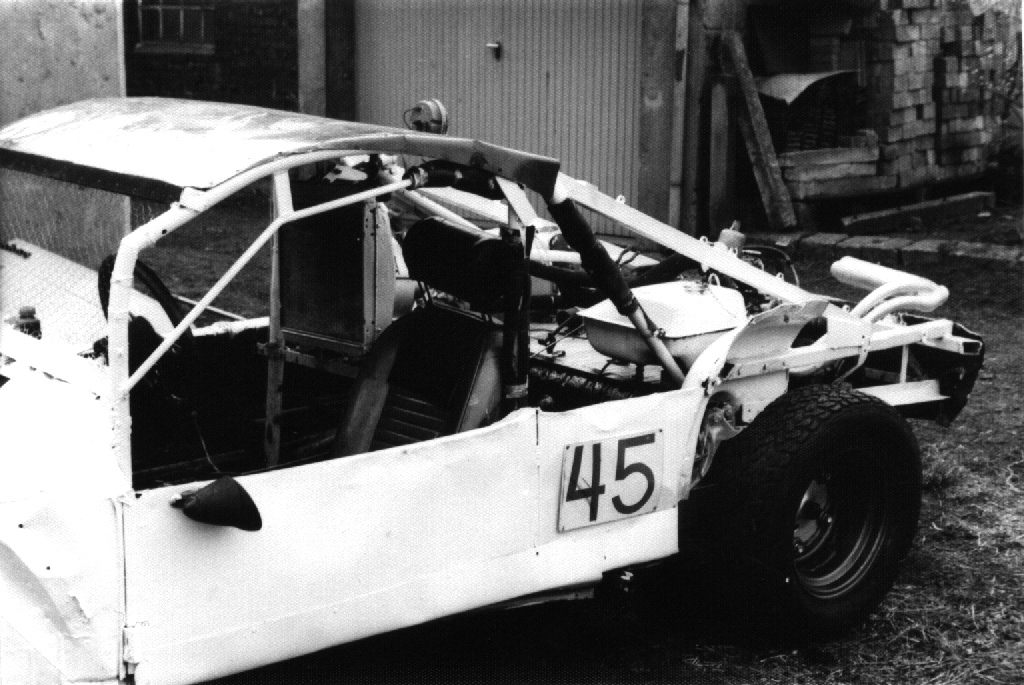 Ich entschloß mich deshalb im Jahre 1975 an diesem Sport teilzunehmen. Ich besorgte mir einen alten VW- Käfer, trennte ihn von allem überflüssigen Blechteilen. Dazu gehörte auch das Dach. An seiner Stelle kam ein Überrollkäfig. Das ganze Fahrzeug wurde flacher und breiter. Ein Buggy halt.