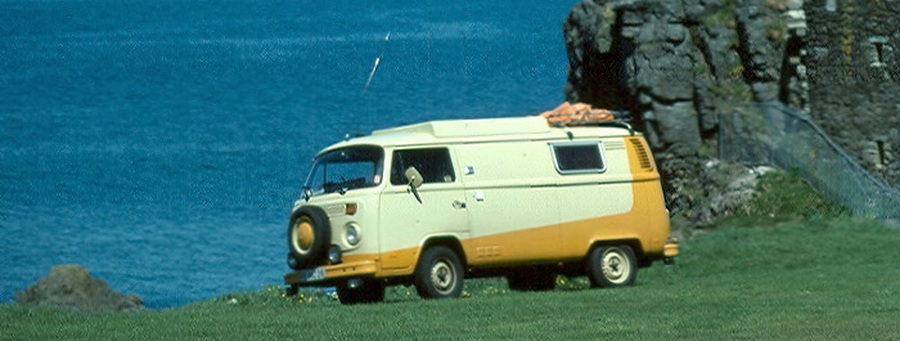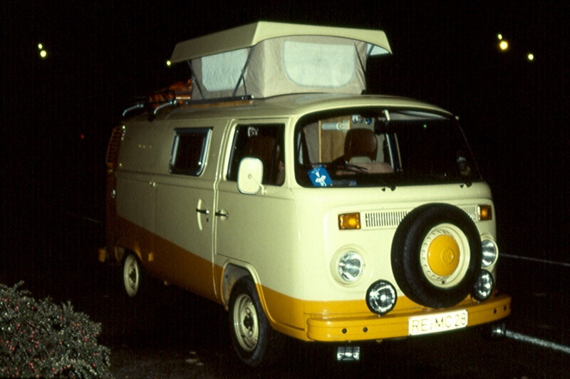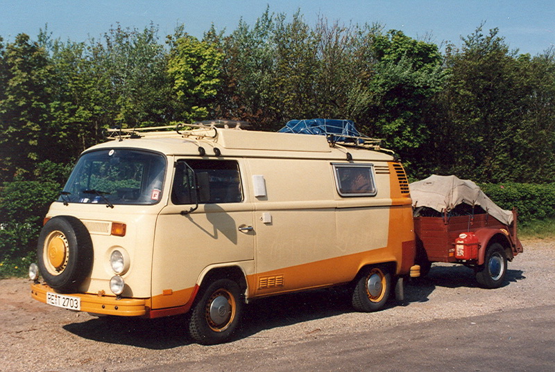Im Winter 1979 bekam ich durch Zufall einen VW-Kastenwagen angeboten. Das Fahrzeug war keine zwei Jahre alt und hatte vorher seinen Dienst als Lieferwagen bei Karstadt getan. Jetzt war sein Heck durch einen Motorbrand allerdings etwas in Mitleidenschaft gezogen. Dafür stimmte der Preis von 2000 DM. Das Fahrzeug sollte unser erstes Wohnmobil werden.