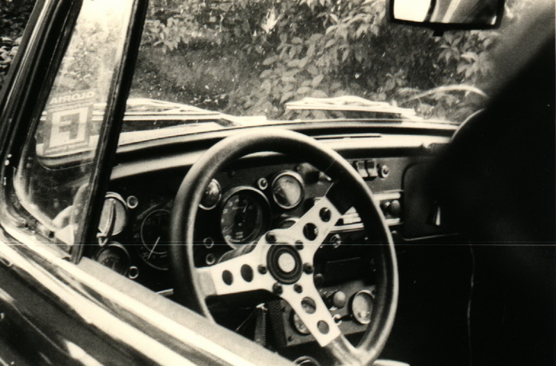 Den Innenraum des Käfers habe ich ebenfalls stark verändert. Von einem NSU TTS und aus anderen Schrottfahrzeugen bekam er die Instrumente und Schalter in das Cockpit verpflanzt. Die serienmäßigen Sitze mußten Schalensitzen weichen. Ein montierter Überrollbügel beschränkte die Sitzplatzzahl auf zwei und machte somit die Rücksitzbank überflüssig. Sie war eh zu schwer :-)